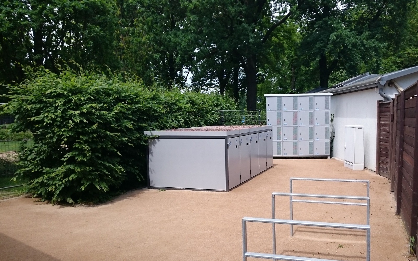 Skříňky na zavazadla s nabíjecí stanicí pro elektrokola ve východoněmecké Růžové zahradě