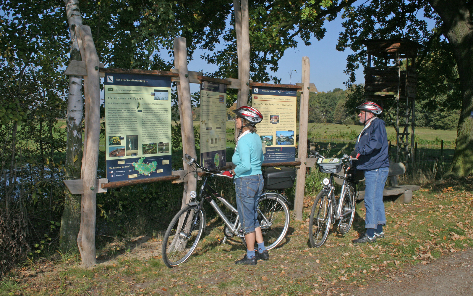 Cyklostezka vede biosférickou rezervací Hornolužická vřesoviště a rybníky (Oberlausitzer Heide- und Teichlandschaft), kde krouží orli mořští. Populace těchto impozantních dravců se v Německu od 80. let minulého století zotavuje. Dnes má orel mořský svá hnízdiště znovu i v oblasti vřesovišť a rybníků jižně od Lužických jezer (Lausitzer Seenland). Na okružní trase budete projíždět lesy, kolem luk, polí a rybníků. Z cesty anebo z míst u rybníků, která byla za tímto účelem speciálně vytvořena, můžete pozorovat orly mořské, ale i jeřáby, volavky a další vodní ptáky. Na sedmi informativních zastávkách cestou se můžete dozvědět něco o způsobu života a revíru orla mořského. Tyto stanice nemůžete minout, nad každou se ve větru otáčí stříbrně se lesknoucí orel mořský. Po cestě se vyplatí udělat si malé zastávky, a to na vyhlídkách, pozorovatelnách, u přírodních a kulturních památek, v restauracích na území této biosférické rezervace, v obchůdcích, u uměleckých řemeslníků a ve vlastivědných muzeích.