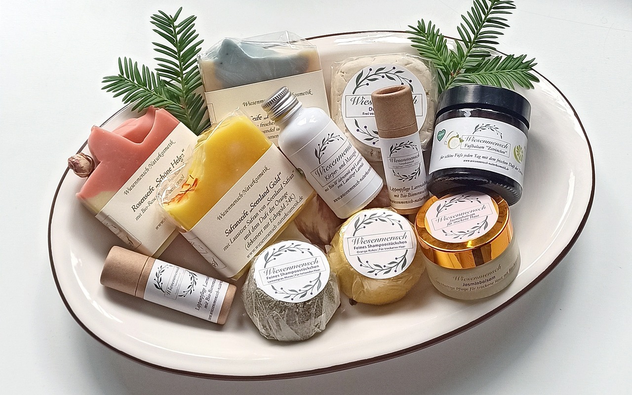 Wiesenmensch ist eine kleine Manufaktur, die natürliche Pflegeprodukte aus Leidenschaft herstellt. Unter Verwendung von ausgewählten Rohstoffen, wie Pflanzenöle, Blütenwasser, natürliche Farbstoffe und naturreine ätherische Öle werden Haar- und Körperpflegeprodukte mit viel Liebe hergestellt.