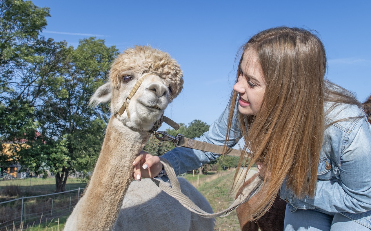 Heute steht etwas ganz Besonderes auf dem Programm: eine Alpaka-Wanderung bei Weggefährten Lausitz! Als uns die ruhigen Tiere auf der Weide mit ihren großen Kulleraugen begrüßen, sind nicht nur die Kinder begeistert. Der Spaziergang durch die Natur, begleitet vom sanften Schnauben der Tiere, bringt uns allen eine besondere Ruhe.