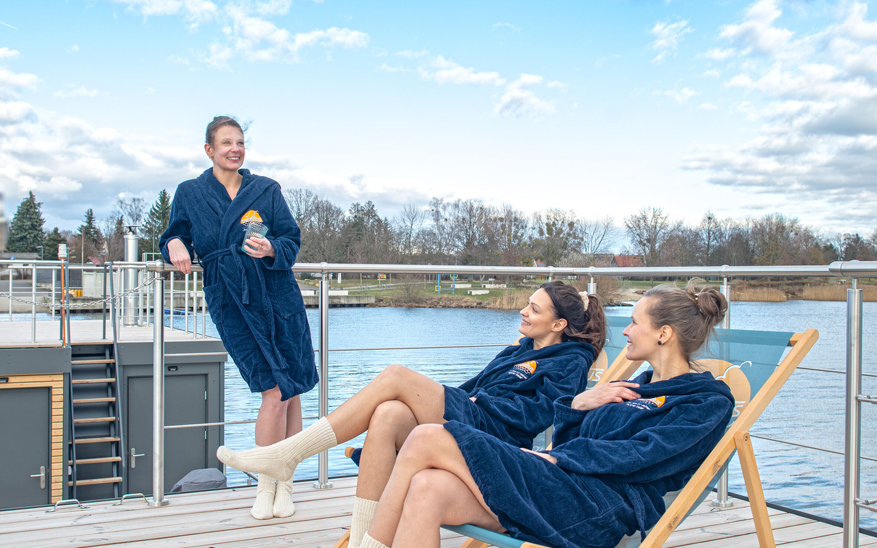 Winterzeit ist definitiv Wellnesszeit und jede, die für ihr Leben gerne schwitzt, ist hier richtig gut aufgehoben. Am Senftenberger See können Frauengruppen ein Saunafloß exklusiv mieten und entspannte Stunden verbringen. Die Boote vom Anbieter treibHaus tragen eine geräumige finnische Sauna mit Panoramafenster, Lounge mit Soundanlage und Dachterrasse. Im Sommer können die Gäste damit in Eigenregie über den See kreuzen, im Winter liegen die Flöße im Hafen vor Anker. Bis zu zwölf Genießerinnen finden hier Platz. Snacks, Fruchtcocktails und Peelings mit Salz oder Olivenöl sind zubuchbar.