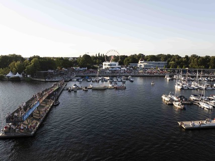 Ein ganz besonderes Erlebnis: das große Höhenfeuerwerk am Samstagabend über dem Stadthafen.