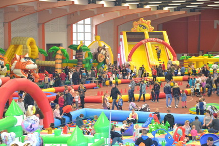 Kindertobetag in der Niederlausitzhalle mit vielen Hüpfburgen, Riesenrutschen, Kugel-Hindernisbahn, Crazy Hop Simulator, Drachen-Maul-Rutsche, Thomas die Lok, Wabbelberg, lustige Rutscher, Kletterwand, Kleinkinderspielplatz und noch vieles mehr.