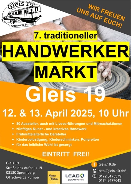 Am 12. und 13. April verwandelt sich das "Gleis 19" in einen lebendigen Ort voller traditioneller Handwerkskunst! Der beliebte Handwerkermarkt lädt euch ein, die Vielfalt des Handwerks in entspannter Atmosphäre zu entdecken.