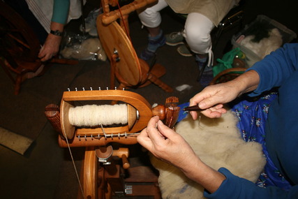 Verspinnen von allerlei Wolle mit Spinnwirtel & Spinnrad Wer hat, bitte sein eigenes Spinnrad mitbringen! Für alle Neueinsteiger stehen Spinnwirtel und Spinnräder zum Ausprobieren im atz bereit.