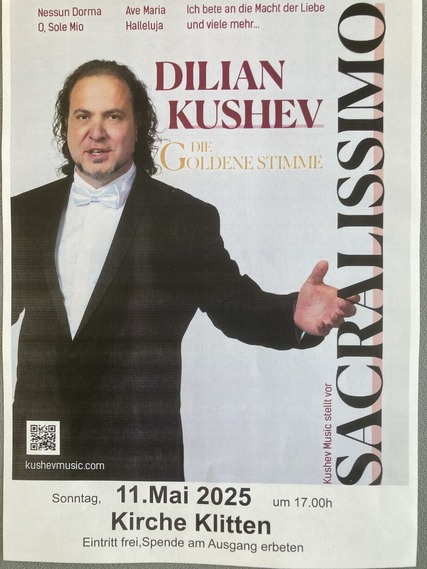 Die "Goldene Stimme" Dilian Kushev kommt am 11. Mai 2025 nach Klitten in die Kirche.