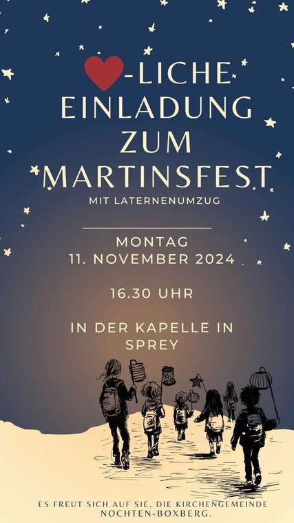 Sie sind herzlich eingeladen am 11.11.2024 zum Martinsfest mit Laternenumzug zur Kapelle in Sprey.