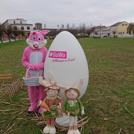 Auch der rosa GuWo-Hase hoppelt durch die Innenstadt, verteilt süße Kleinigkeiten und versteckt 10 goldene Eier, die der/ die Finder/in dann am GuWo Stand gegen eine Überraschung einlösen kann. Neben dem großen Plüschhasen werden auch wieder die echten Hasen zum Anfassen vom Kleintierzüchterverein Groß-Breesen mit dabei sein...