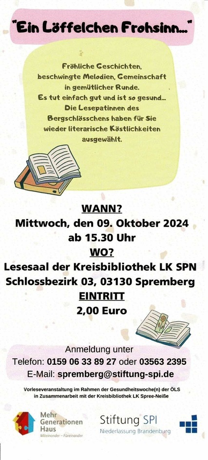 Vorleseveranstaltung "Ein Löffelchen Frohsinn…"