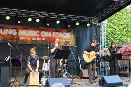Jedes Jahr begeistert das Konzert der Rock/Pop/Jazz-Abteilung zahlreiche Zuhörerinnen und Zuhörer im schönen Ambiente des Schlosshofs. Das Programm gestalten Gesangsschülerinnen und -schüler mit der Lehrerband, die Schülerband "4Tune", die Jazz-Combo und die Vokalgruppe "Candy Girls".
