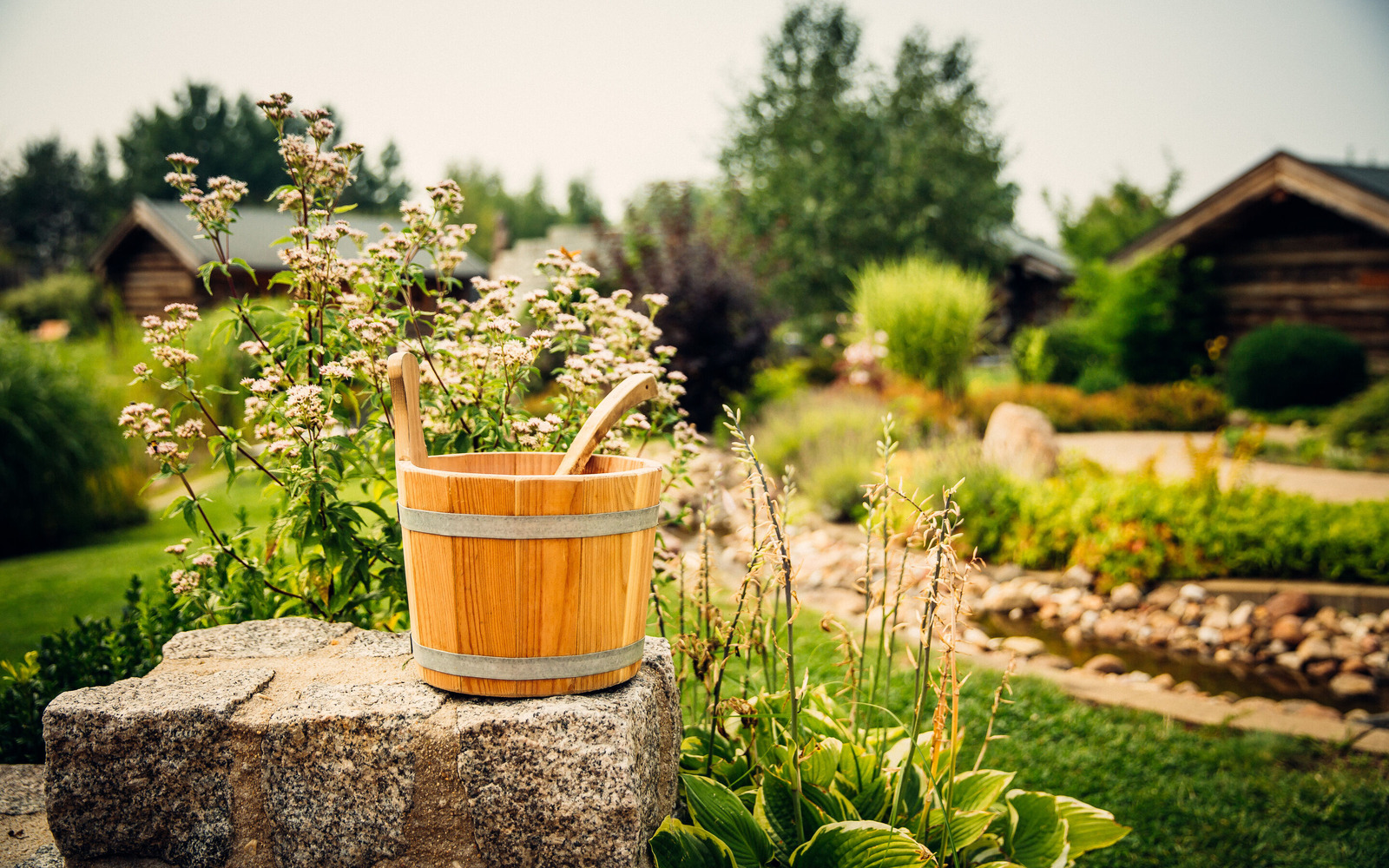 Ein Highlight ist das traumhafte Saunadorf mit rustikalen Blockhäusern und integrierten finnischen Saunen. Naturliebhaber können am Gartenteich mit Bachlauf in harmonischer Atmosphäre zur Ruhe kommen und Energie schöpfen.