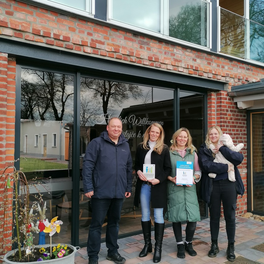 Ein Foto der Übergabe der Urkunde und Plakette "Familienfreundlich im Lausitzer Seenland" erhalten Sie frei zur Veröffentlichung in Zusammenhang mit dieser Meldung.