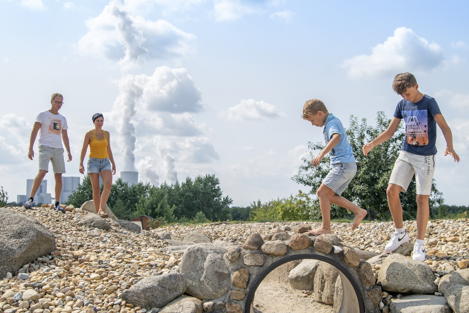 Rätselspaß für Familien gibt es auch im Findlingspark Nochten nördlich des Bärwalder Sees, einem deutschlandweit einmaligen Gartenkunstwerk aus 7000 Findlingen. In einem Rundgang durch die sieben Parkbereiche erfahren Kinder spielerisch wie die Felsbrocken einst aus Skandinavien in die Lausitz kamen. In der dazugehörigen Erlebnisausstellung „Eisig, riesig, spannend – Abenteuer Eiszeit“ begeben sie sich auf Zeitreise. Und in der „Wüste“, einem Abenteuerspielplatz mit Kletterfindlingen, Labyrinth und Wasserspielplatz, können die Jüngsten ausgiebig klettern, matschen und spielen.