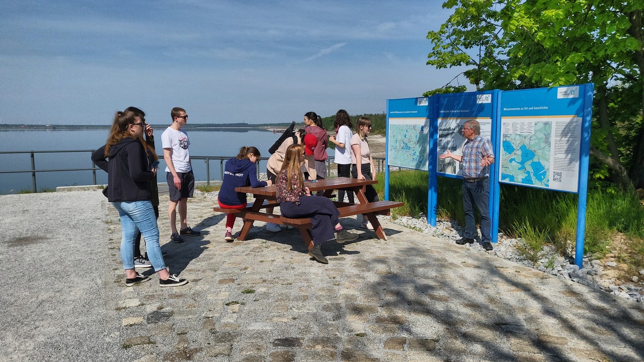 Bildunterschrift: Exkursion der Studierenden durch das Lausitzer Seenland am 10. Mai 2022, Halt in Lieske am Sedlitzer See
