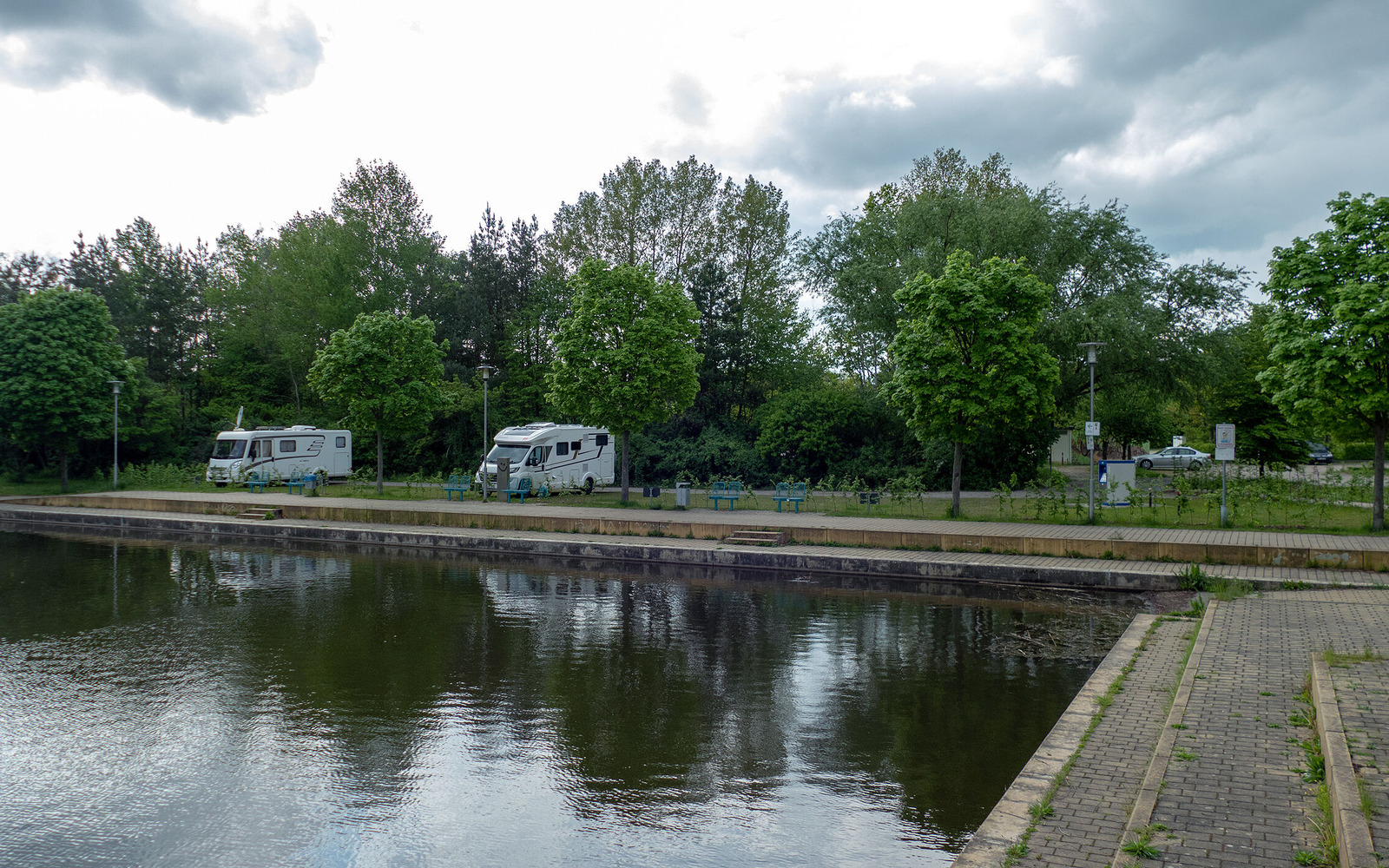 The motorhome parking area at Gondelteich in Hoyerswerda offers space for five vehicles and is located directly next to the Lausitzbad and close to the Neustadt city center.