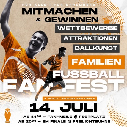 Das große EM-Finale wird mit einem EM-Familien-Fußball-Fanfest auf dem Festplatz gefeiert. Das Fanfest beginnt um 14:00 Uhr und bietet zahlreiche Aktivitäten und Unterhaltungsmöglichkeiten für die ganze Familie.